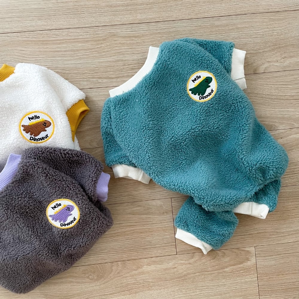 【即納】ダイナソーフリースロンパース(3color)韓国 犬 服 フリース オールインワン ロンパース 冬服 恐竜
